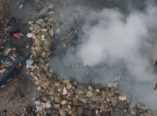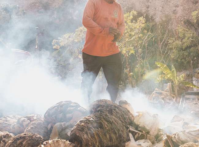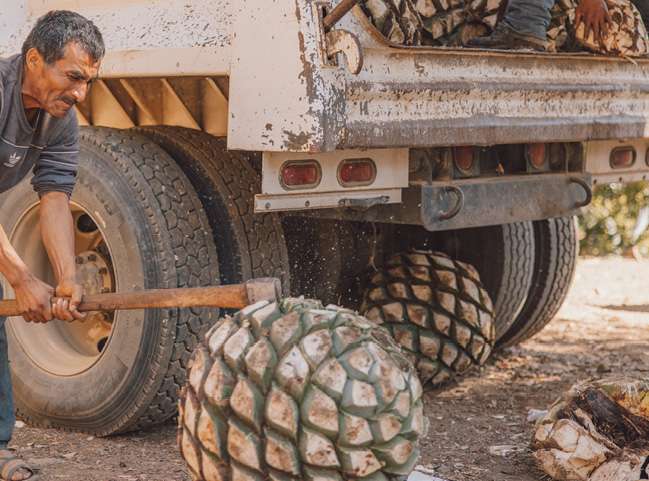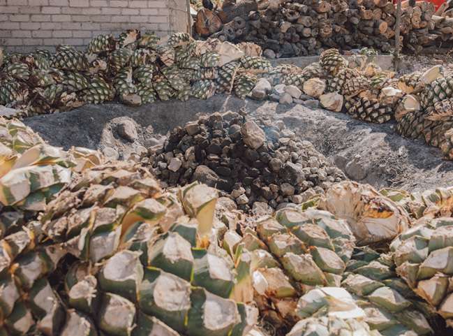 To release the valuable sugars needed for fermentation, the piñas must be cooked slowly. The roasting step is performed in a traditional oven in the ground and can last for several weeks. After roasting, the sweet, cooked agave has developed complex flavors and picked up smokey notes from the oven itself.