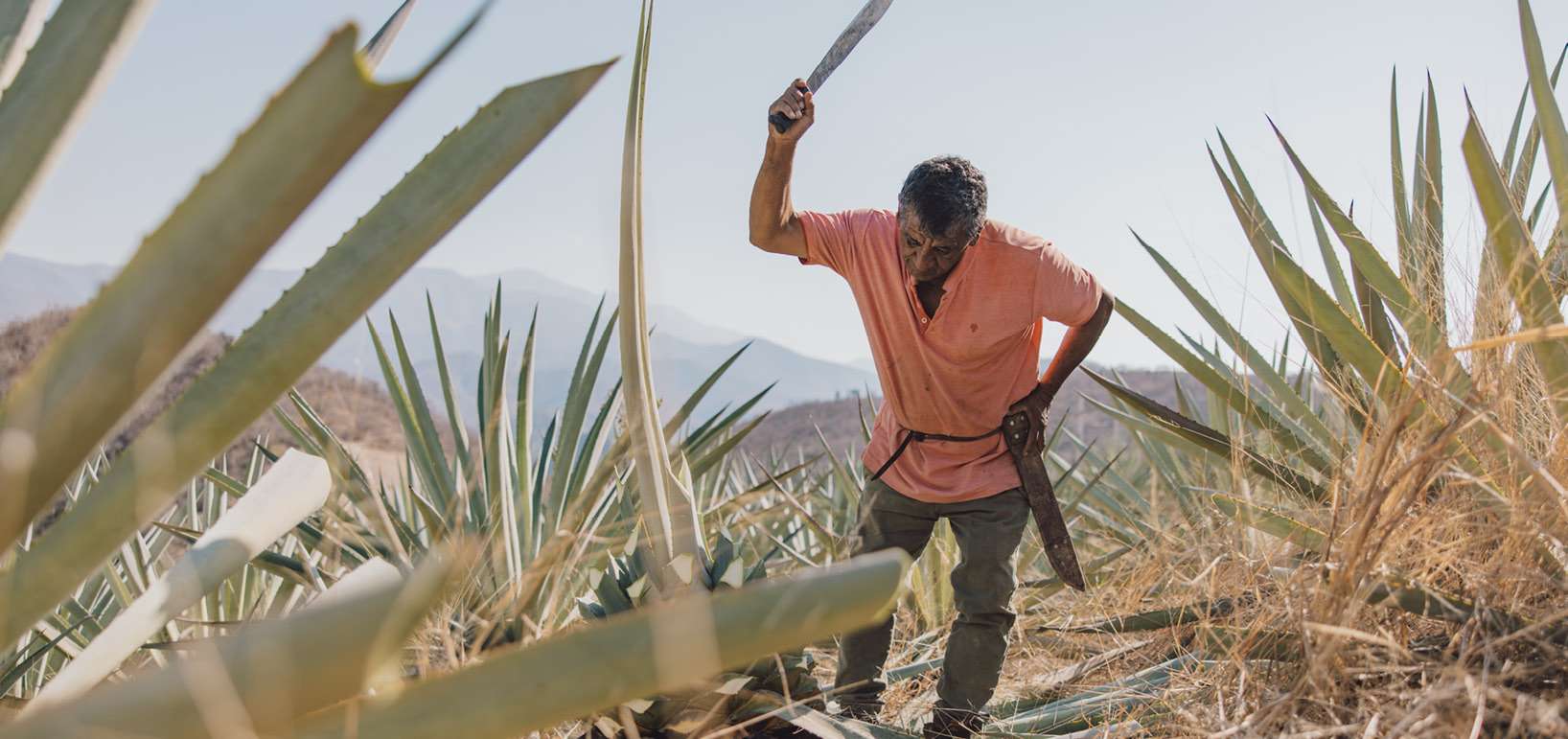 Each agave reaches maturity in its own time, and it is up to our mezcalero to recognize the signs that it is ready to be harvested. The pencas (leaves) are trimmed off with a machete, and the piñas are pulled from the ground, after which they are taken from the remote fields back to the palenque.